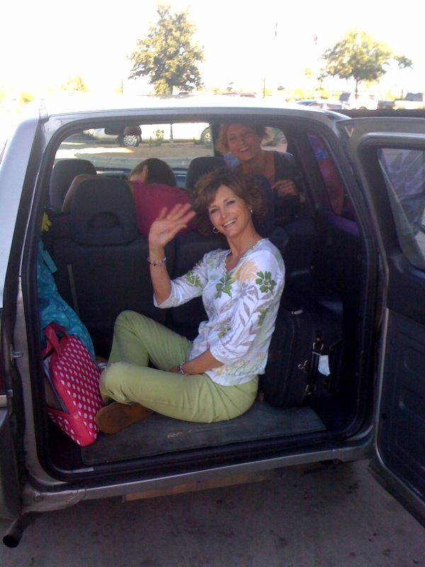Today my mom came into town to watch Jada and Nick's kids while they went on a staff retreat and we picked her up from the airport. On our way, though, we found out that Jada was at the ER with Emry because she had a concussion (she's great now though!) and we needed to pick them up on our way home. So, in our tiny car, we had two big carseats and four adults, as well as a huge Tigger balloon Emry received at the hospital! Mom is pictured in the back, though Jada ended up riding back there. It was an adventure!